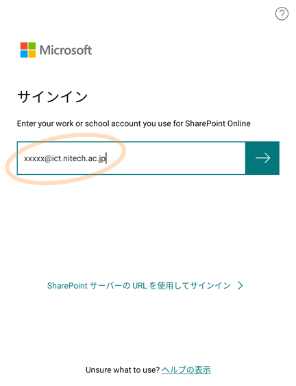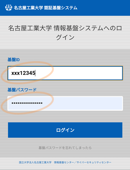 1. アプリ起動後,基盤センターのアドレスでサインインします(初回のみ)
