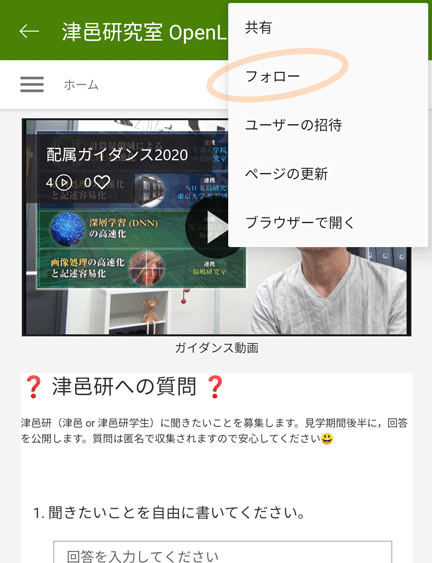 4. サイト右上の「…」メニューから「フォロー」しておくと便利です